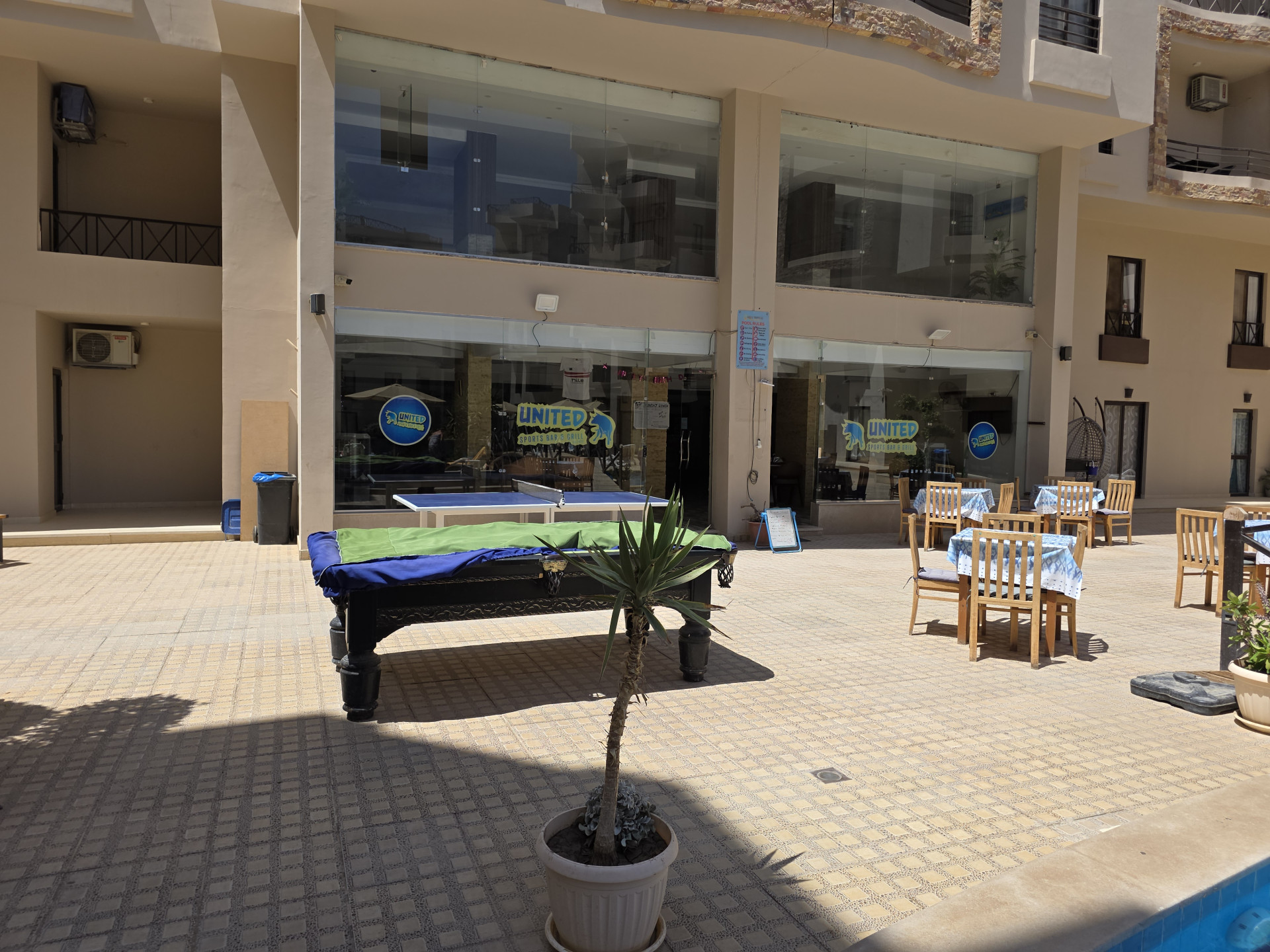 Apartament w Hurghadzie w dzielnicy Al Ahyaa w resorcie Aqua Tropical. W resorcie znajdują się 3 baseny, restauracja oraz sklep. Można korzystać również z dwóch sąsiednich resortów Aqua Palms i Aqua Infinity , w których znajdują się dwa kolejne baseny, sklep , spa , salon piękności i siłownia. Resort jest bardzo czysty i zadbany